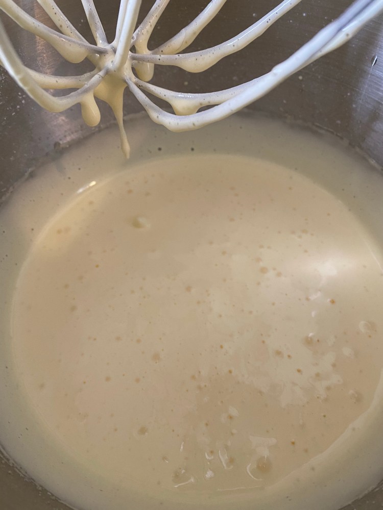 A questo punto, uniamo lo zucchero in due riprese e la vaniglia e lasciamo montare le uova per almeno 8 minuti in planetaria alla massima velocità, il composto deve diventare chiaro e triplicare di volume.