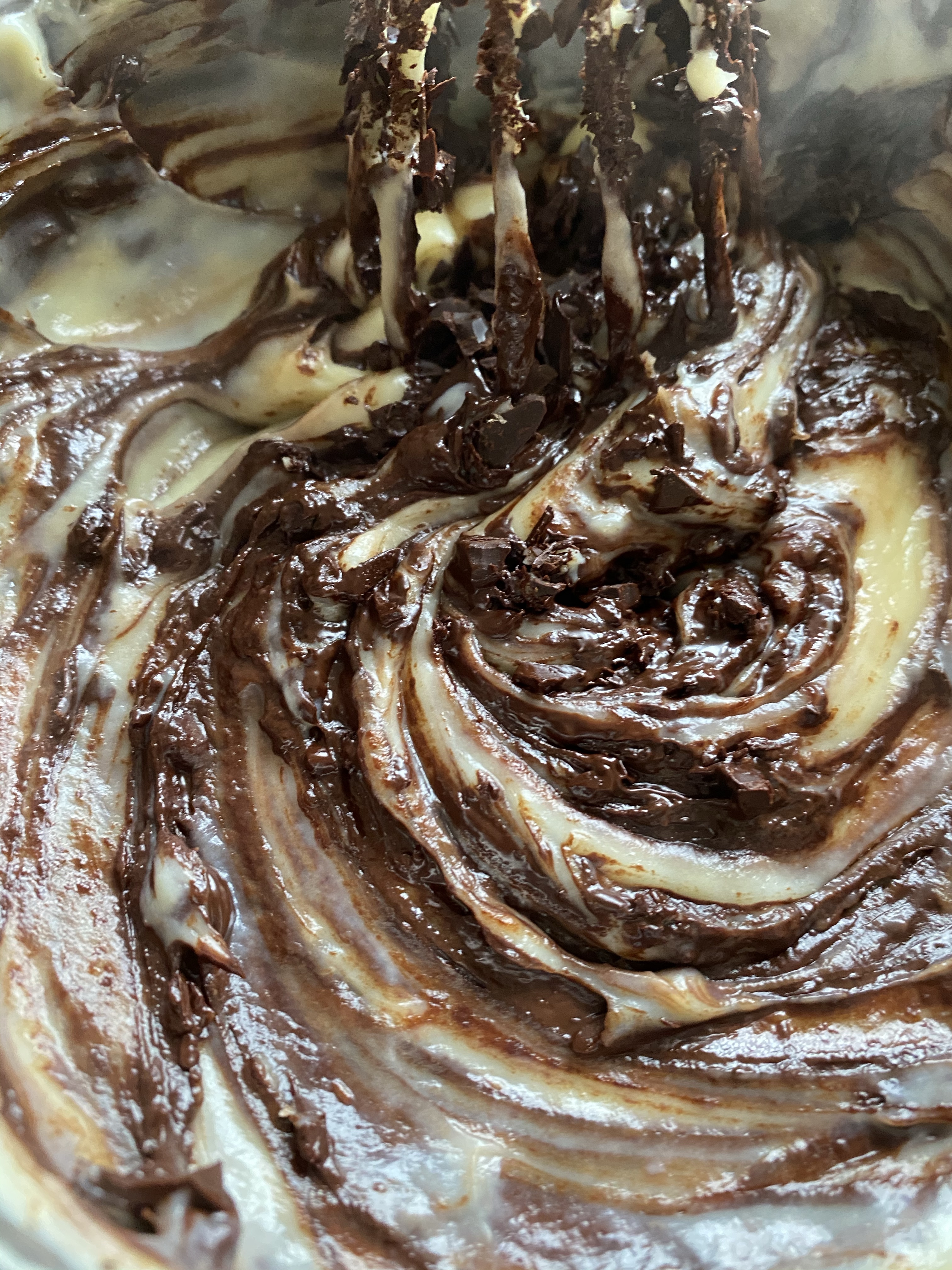 Il cioccolato va aggiunto fuori dal fuoco ma con la crema ancora ben calda, e vedrete che si scioglierà subito, emulsionandosi completamente alla crema.
