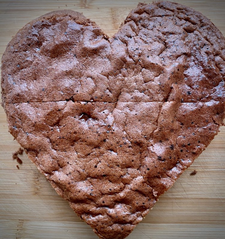 Come vedete ho sagomato il mio pan di Spagna a forma di cuore, ma voi potete tranquillamente lasciarlo tondo.